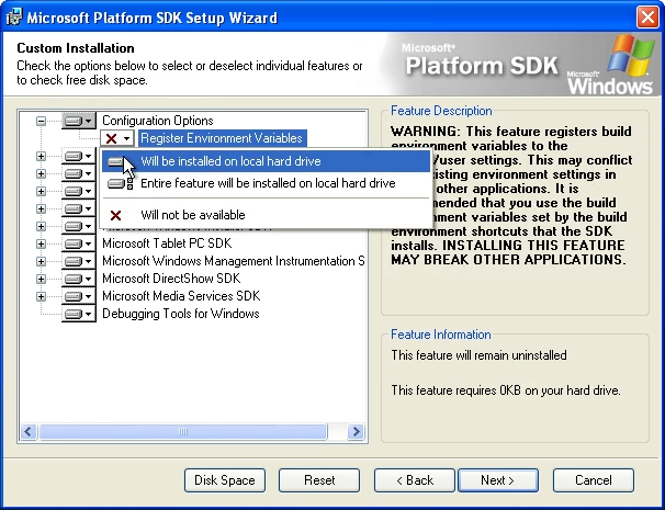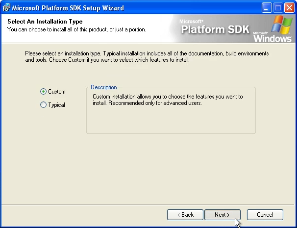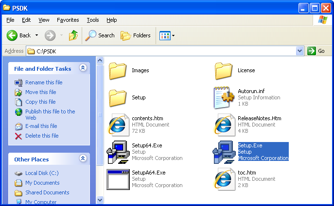 Open the extracted Platform SDK directory, and run setup.exe: