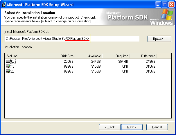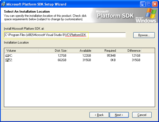 | x86 | C:\Program Files\Microsoft Visual Studio 8\VC\PlatformSDK\ |